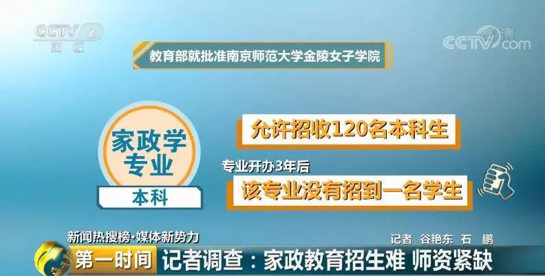北京商贸学校遭遇的尴尬并不是个案。2011年,教育部就批准南京师范大学金陵女子学院设立家政学专业本科,允许招收120名本科生,然而,专业开办3年后,该专业没有招到一名学生。