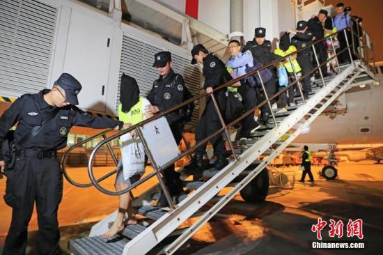 ↑5月14日晚22时许,随着一架民航客机缓缓降落在上海浦东国际机场,57名系列社交电信网络诈骗案犯罪嫌疑人被上海警方从海南儋州押解回上海。