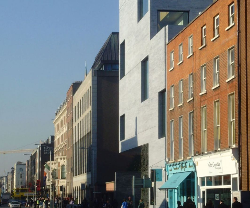 “新建筑遵从都柏林的一种建筑传统,在这里,重要建筑与整个城市街景的交界处都达成一种大小比例上的显著转换。”