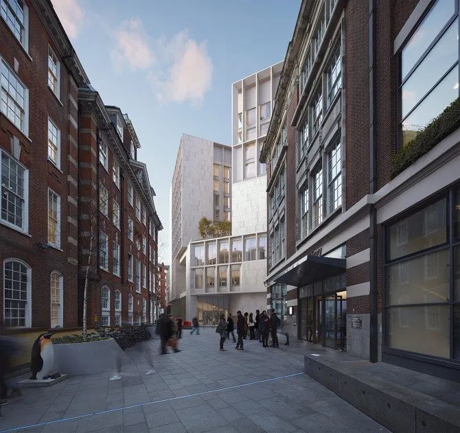 坐拥一处完整的城市街区,建筑师们以纵向取代横向,打造出一个感觉更像是由楼阁庭院组成的校园,宽敞多样的开放空间引发更多自然发生的相遇与交流,建筑从内部营造出一种社区的感觉,轻松自在地置身于所处的城市之中。