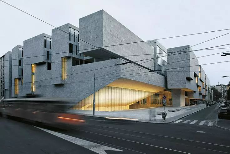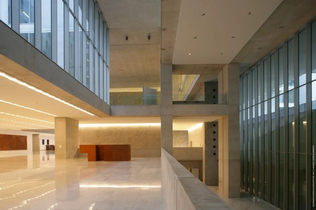 作为2008世界建筑节年度建筑大奖作品,这一巨型石材幕墙建筑可被划为三个不同的部分:容纳着令人瞩目的大礼堂和其它区域的下沉空间;位于首层的流动空间;以及承载更多功能性的“悬浮式”体块。大礼堂占据了主立面,并提供了一种象征性的存在感。大面积通透元素和多重景观的运用意在使光线充溢整座建筑,路人也将被吸引到室内空间的生活情境中。