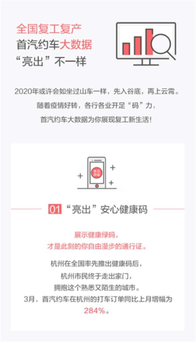 随着疫情防控形势渐渐好转,城市开始逐步恢复往日的热闹,出行行业也在复苏。首汽约车通过对3月份全国各个城市复工期间用户使用首汽约车的出行数据进行分析,日前发布了“城市复工出行大数据”,多个数据表明全国各地网约车出行正在加码回暖。