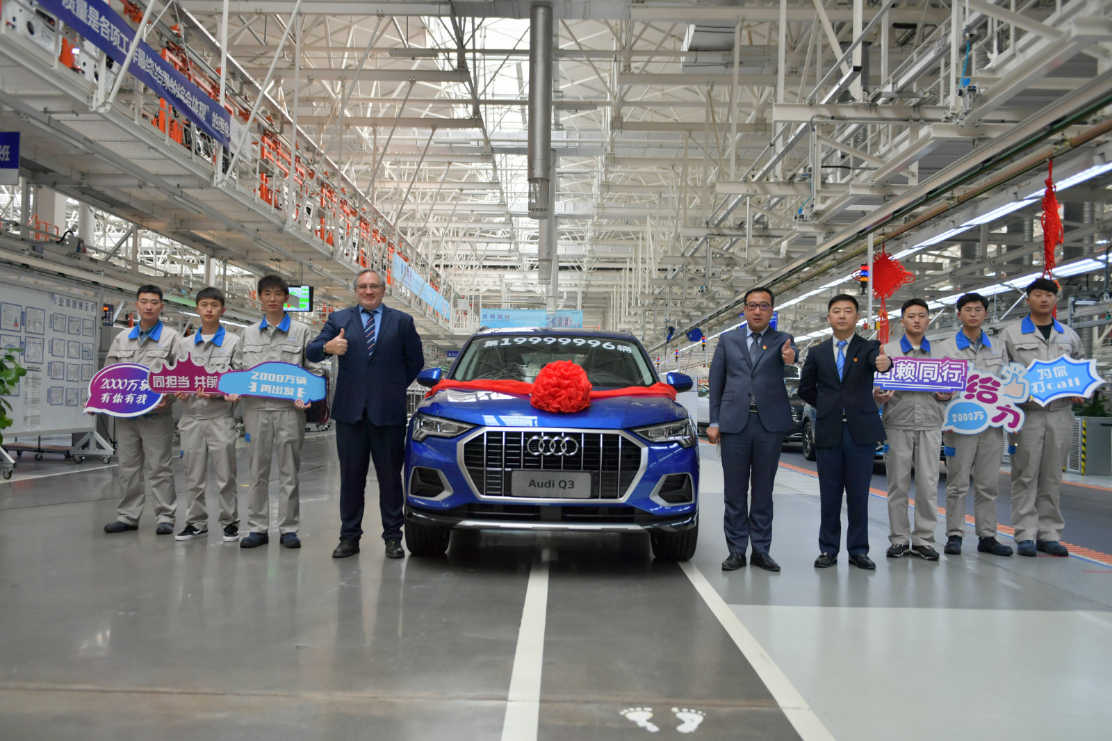 在天津开发区一汽-大众第19999996辆汽车——奥迪Q3在天津华北基地下线。摄影:张帅