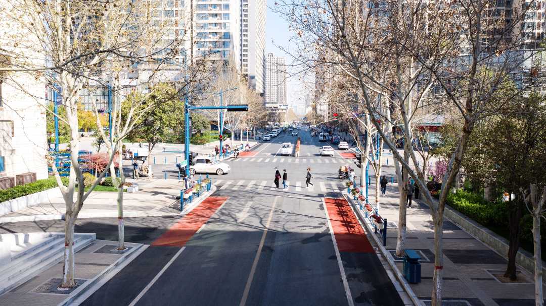 ↑图为郑州市二七区政通路与人和路交叉口一景。通过一系列措施,郑州市二七区正向着达到“多杆合一、三行系统、四角平坡、系统分类、整体设计、建管结合”的国际规范、国内领先的六项标准推进老旧道路改造升级,并按照“设计引领、需求导向、以人为本”的理念,提升城市品质内涵、促进老城区有机更新。 (资料图片)