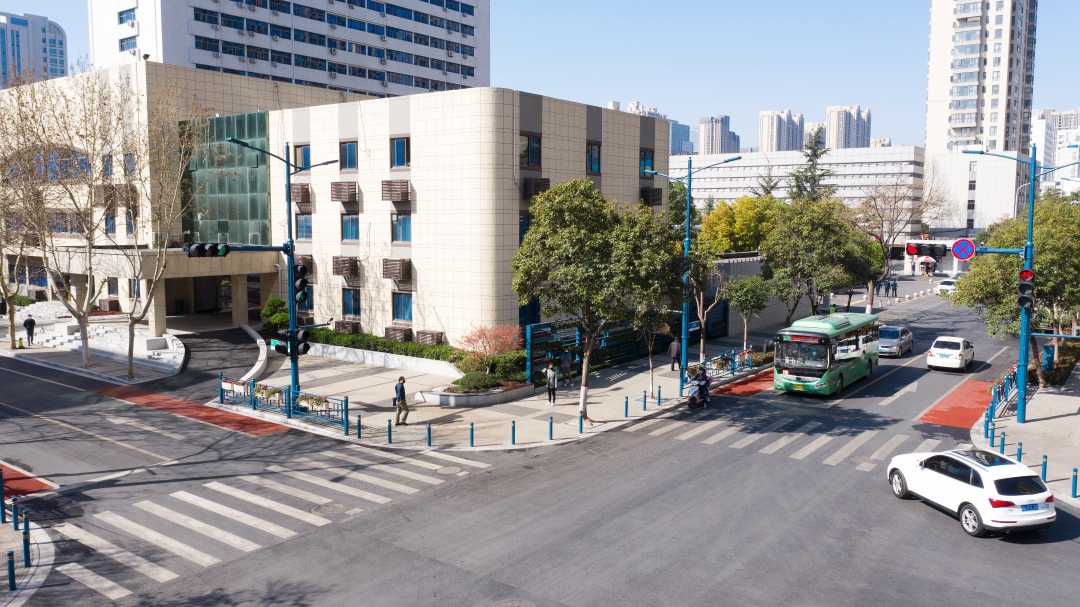 ↑图为郑州市二七区政通路与人和路交叉口一景。 (资料图片)