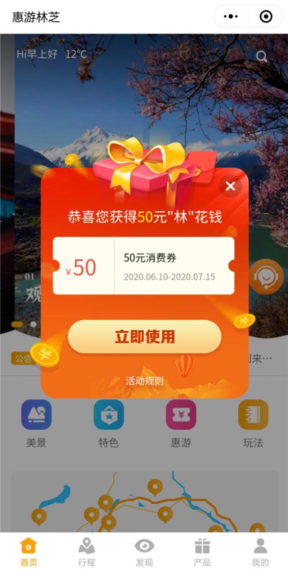首批消费券发放时间从6月10日上午10:30到6月14日12:00,游客可进入“林芝市旅发局”官方微信公众号进入领取页面,或通过扫码进入“惠游林芝”小程序领取。