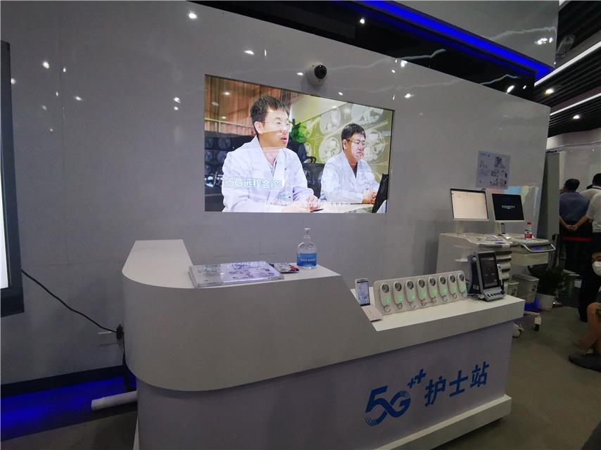 龙岗区5G网络全覆盖暨全景展示体验活动启动仪式现场展出的5G护士站,可实现临床护理智能化。