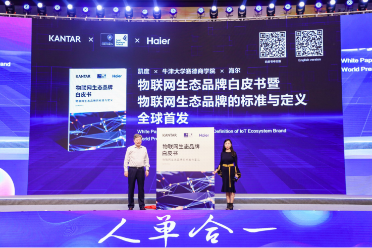 在论坛现场,凯度携手牛津大学、海尔发布了《物联网生态品牌白皮书》(以下称白皮书),伴随着凯度集团中国区CEO、BrandZ全球总裁王幸与海尔集团董事局主席、首席执行官张瑞敏联合揭开白皮书的面纱,全球首个物联网时代的生态品牌标准正式诞生。