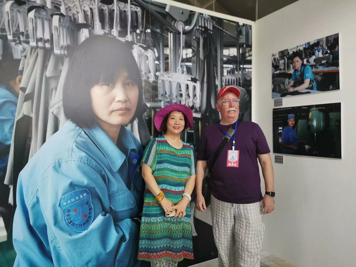 ↑燕苍娜携中国女工肖像摄影作品参加大理国际影会。图左一为燕苍娜