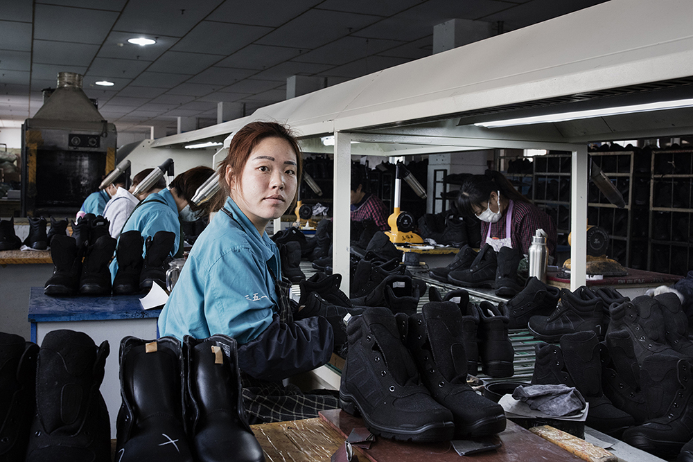 ↑燕苍娜女工摄影作品之一、制鞋厂女工。