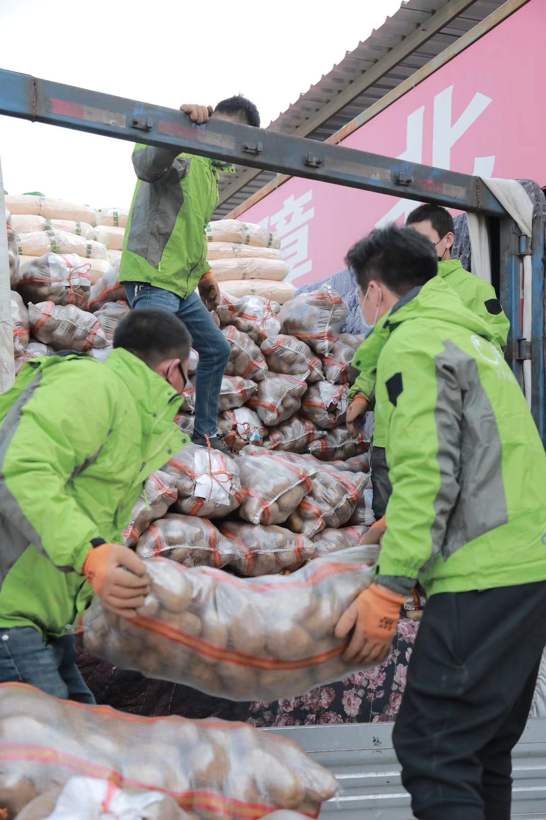 天刚亮,更多美菜员工和供应商东远农贸、围场美薯鲜薯菜合作社的员工赶到发车现场。