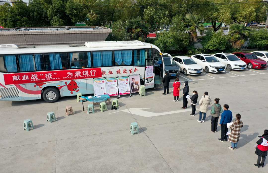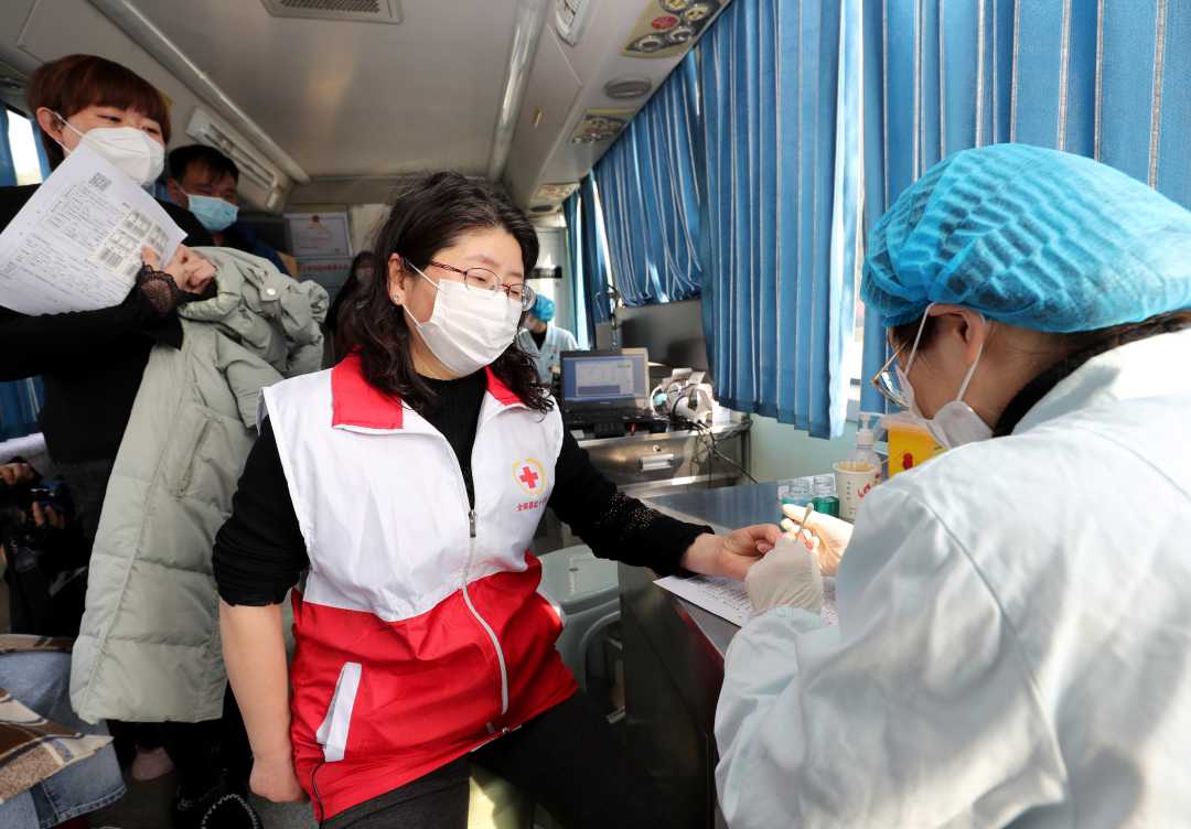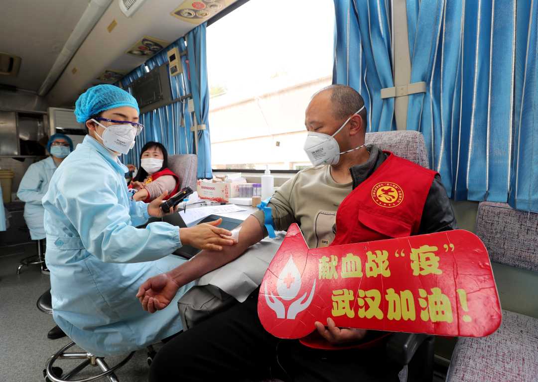 “今天献400(毫升)”。2月27日上午,在安徽全椒县政府旁一辆献血车内,全椒县公路分局道班班长张斌一边挽起袖子,一边和护士说。当日,为缓解临床用血紧张和支援湖北武汉抗击疫情,全椒县红十字会联合滁州市中心血站组织开展“献血战‘疫’ 为爱逆行”为主题的无偿献血活动。
