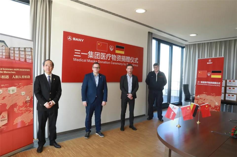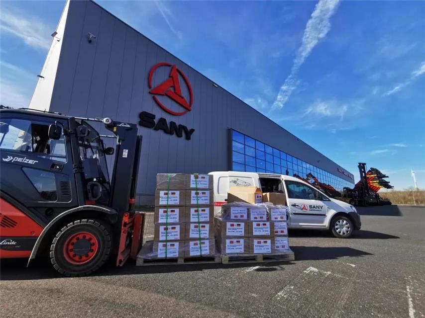 在中国国内新冠疫情最严峻的时期,三一欧洲公司、普茨迈斯特以及三一在德国的合作伙伴们第一时间捐钱捐物,四处寻找疫情防控最急缺的防护服、口罩、护目镜等医疗物资,火速驰援中国。