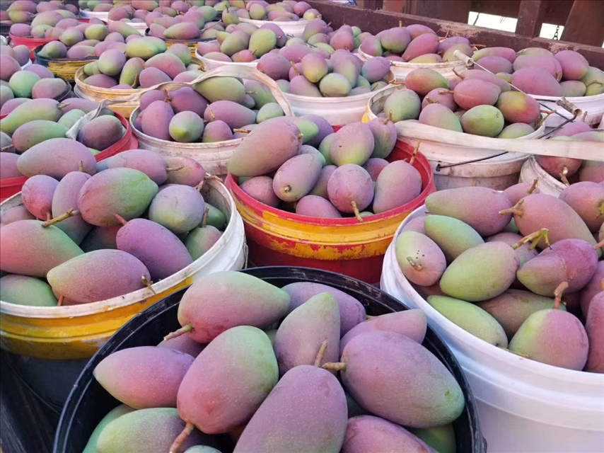 图为大量堆积的贵妃芒生果