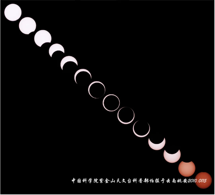 下图为2010年1月15日发生的一次日环食的全过程 👇