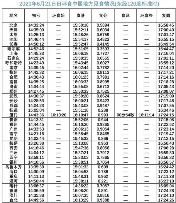 本次日环食在我国境内的历程,从阿里地区初亏(北京时间约13:10)至台湾地区复圆(北京时间约17:30),全程历时近四个半小时。
