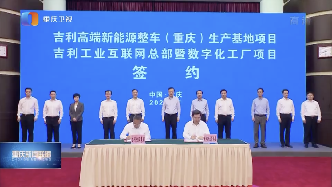 吉利控股集团日前与重庆两江新区正式签署战略合作协议,吉利高端新能源整车项目、吉利工业互联网总部暨数字化工厂项目落户两江新区。
