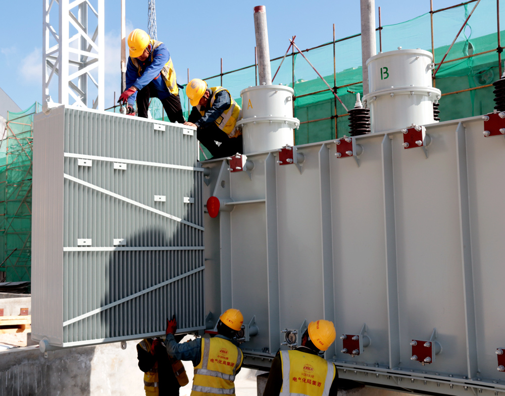 2020年12月11日,兴泉铁路泉州玉湖牵引变电所,中国铁建电气化局兴泉铁路项目部二分部的吊车正在配合工人吊装变压器散热片。兴泉铁路是海上丝路起点泉州连接中原、西南、西北地区的江西、湖北、湖南、陕西、山西、内蒙古等省区的重要交通干线。目前,中铁建电气化局建设者正在抓紧时间进行信号、通信、电力、供电设备安装,确保按期完成年度工程任务。(郑传海)