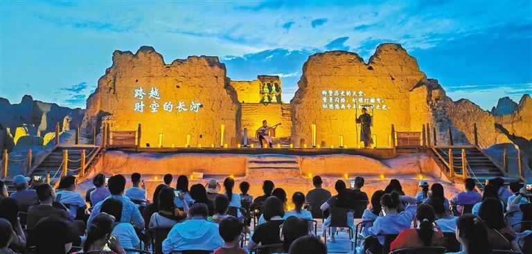 6月24日拍摄的《交河之夜》民族音乐会实景演出现场,游客体验穿越千年的时光之旅。秦梅花摄(中经视觉)