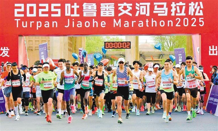 4月6日,2025吐鲁番交河马拉松吸引了来自国内外的2000多名跑者参赛。通过赛事搭建起体育与文旅融合的桥梁,打造特色体育旅游品牌。刘 健摄(中经视觉)