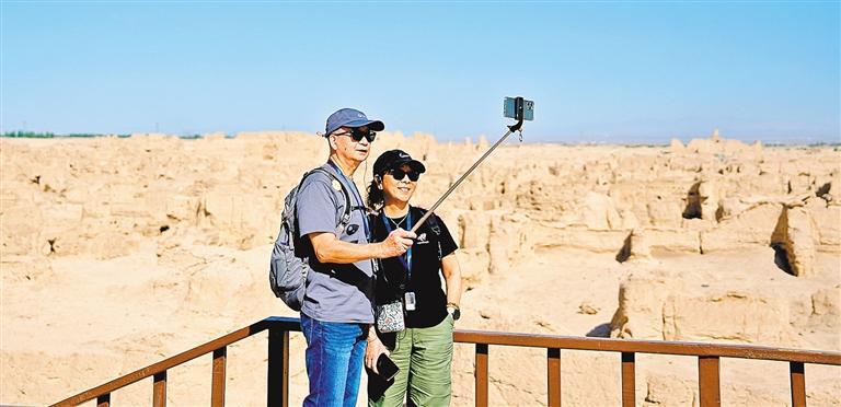 游客在交河故城合影留念(摄于2024年5月2日)。谢懂飞摄(中经视觉)