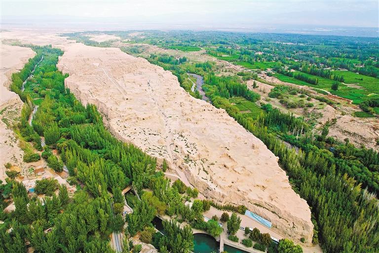 8月26日,空中俯瞰交河故城,其形状宛如一片巨大的树叶。邹 懿摄(中经视觉)